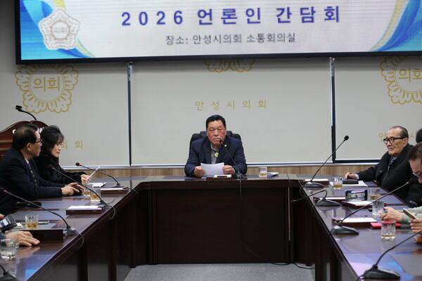 ¾È¼º½ÃÀÇȸ ¾ÈÁ¤¿ ÀÇÀåÀÌ 2026³â ½Å³âÀ» ¸Â¾Æ ¾È¼º½Ã ±âÀÚÇùȸ ¼Ò¼Ó ¾ð·ÐÀεé°ú °£´ãȸ¸¦ °®°í, Áö³ ÀÇÁ¤ ¼º°ú¿Í ÇâÈÄ ÀÇȸ ¿î¿µ ¹æÇâ, ¾È¼º½ÃÀÇ ÁÖ¿ä Çö¾È¿¡ ´ëÇÑ °ßÇØ¸¦ ¹àÇû´Ù.