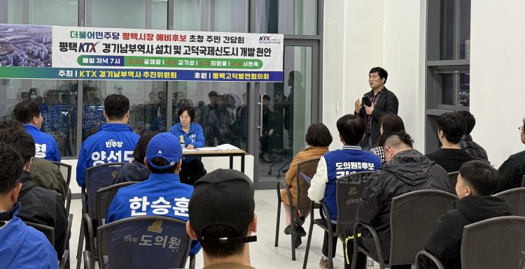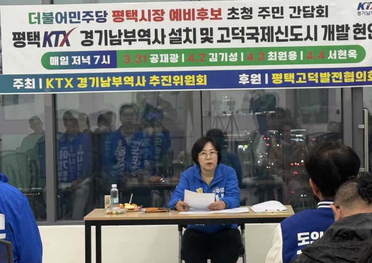 [ÆòÅÃ= ÀºÀ¯Áø ±âÀÚ] ´õºÒ¾î¹ÎÁÖ´ç ¼Çö¿Á ÆòÅýÃÀå ¿¹ºñÈ帴 4ÀÏ °í´ö±¹Á¦½Åµµ½Ã Áֹεé°ú °£´ãȸ¸¦ °®°í, KTX °æ±â³²ºÎ¿ª»ç ¼³Ä¡¿Í °ü·ÃÇØ "ÀÌ »ç¾ÈÀº ´Ü¼øÇÑ Áö¿ª ¹Î¿øÀÌ ¾Æ´Ï¶ó ±¹°¡°¡ ÀÌ¹Ì È®Á¤ÇÑ ±³Åë °èȹÀÇ ÀÌÇà ¹®Á¦"¶ó¸ç Á¶¼ÓÇÑ ÃßÁøÀ» Ã˱¸Çß´Ù.