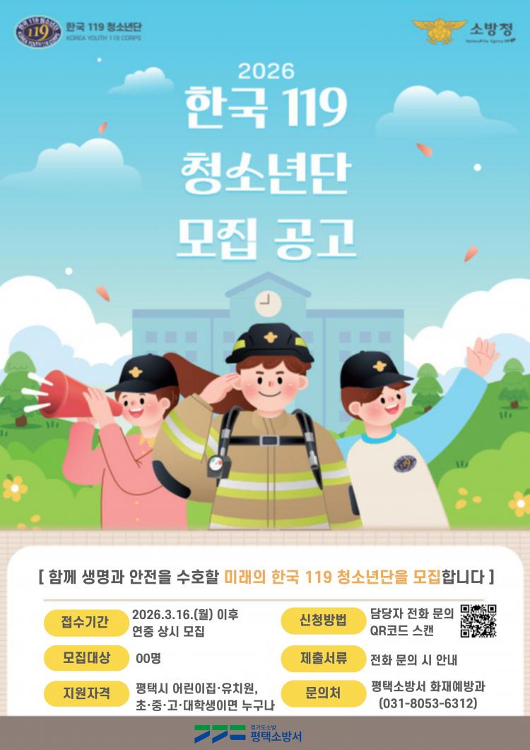 [ÆòÅÃ= ½Å°æÃ¶ ±âÀÚ] ÆòÅüҹ漴 Áö¿ª û¼Ò³âµéÀÇ ¾ÈÀüÀÇ½Ä Çâ»ó°ú ¹Ì·¡ Àç³ ´ëÀÀ ÀÎÀç ¾ç¼ºÀ» À§ÇØ ¡®119û¼Ò³â´Ü¡¯ ½Å±Ô ´Ü¿øÀ» ¸ðÁýÇÑ´Ù°í ¹àÇû´Ù.
