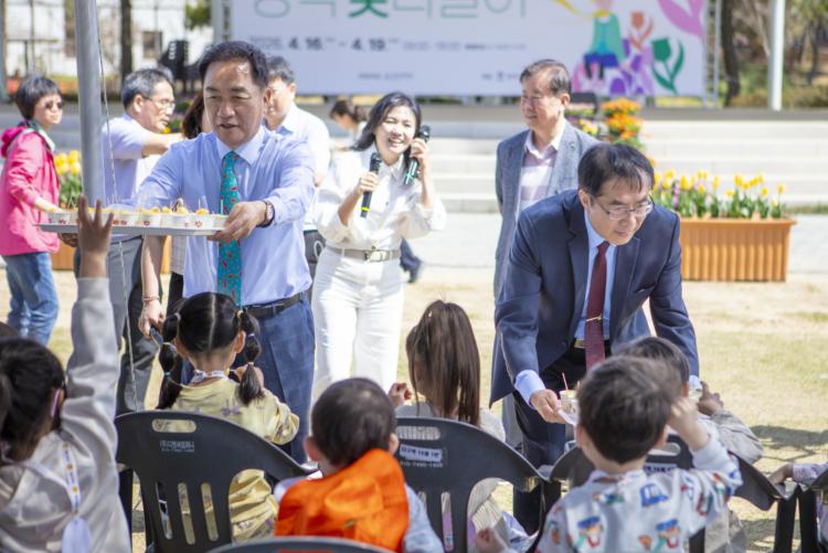 ÀÌ¾î ¿ÀÈÄ ÀÏÁ¤À¸·Î Ȳ¿þÀÌÀú ½ÃÀå ÀÏÇàÀº °ü³» µ¿Àϰø¾÷°íµîÇб³¸¦ ¹æ¹®ÇÏ¿© ¹Ì·¡ ¼¼´ë¿ÍÀÇ ±³·ù ½Ã°£À» °¡Á³´Ù. ´ëÇ¥´ÜÀº 1Çгâ ÀçÇлý 250¿© ¸íÀ» ´ë»óÀ¸·Î ´ë°´ç¿¡¼ ÆÄÀξÖÇà ½Ã½Äȸ ¹× È«º¸ Çà»ç¸¦ ¿°í, û¼Ò³âµé¿¡°Ô ´ë¸¸»ê ÆÄÀξÖÇÃÀÇ ¸À°ú ¿ì¼ö¼ºÀ» ¾Ë¸®´Â ¶æ±íÀº ÀÚ¸®¸¦ ¸¶·ÃÇß´Ù.