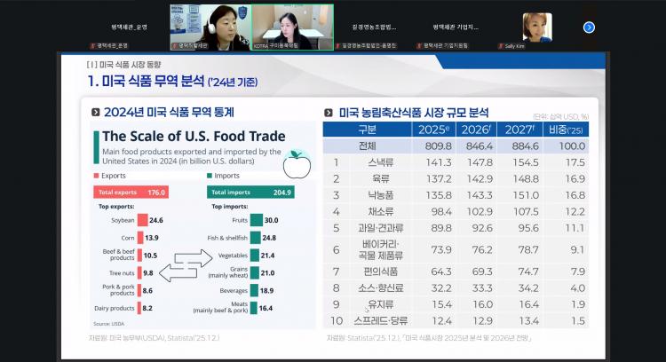 À̹ø À¥¼¼¹Ì³ª¿¡´Â °æ±â³²ºÎ ¹× ÃæÃ»±Ç µî ÁߺÎÁö¿ª¿¡ ¼ÒÀçÇÑ 80¿© °³ ¾÷ü°¡ Âü¿©ÇÑ °¡¿îµ¥, ´ëÇѹ«¿ªÅõÀÚÁøÈï°ø»ç(KOTRA), Çѱ¹³ó¼ö»ê½ÄǰÀ¯Åë°ø»ç(aT), Çѱ¹½Äǰ»ê¾÷Çùȸ Àü¹®°¡¸¦ °»ç·Î ÃʺùÇÏ¿© K-Ǫµå ¼öÃâ Æ®·»µå ¹× °¢Á¾ Áö¿ø»ç¾÷, ¹Ì±¹․ÀϺ» ÇöÁö ½ÃÀå ÁøÃâ Àü·« ¹× ÇØ´ç±¹ÀÇ ½Äǰ °ü·Ã ±ÔÁ¤․ÀÎÁõÁ¦µµ µîÀÇ ³»¿ëÀ» ÁýÁßÀûÀ¸·Î ´Ù·ç¾ú´Ù.