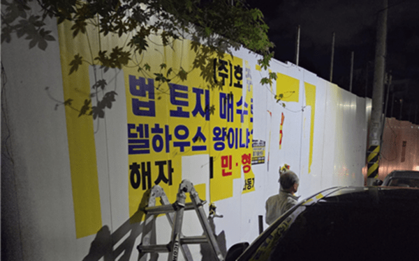 ÇÑÆí, ȵ¿°³¹ßÀº H°Ç¼³ÀÇ ÇàŸ¦ °ø·ÐÈÇϰíÀÚ »ç¾÷Áö Àαٿ¡ Çö¼ö¸·À» °Ô½ÃÇßÀ¸³ª, Çǰí¼ÒÀεéÀÌ ¾ß°£¿¡ À̸¦ ¹«´Ü ö°ÅÇß´Ù¸ç Áýȸ¹æÇØ, Àç¹°¼Õ±« µîÀÇ ÇøÀÇ·Î Ãß°¡ °í¼ÒÀåÀ» Á¦ÃâÇÑ »óÅ´Ù.